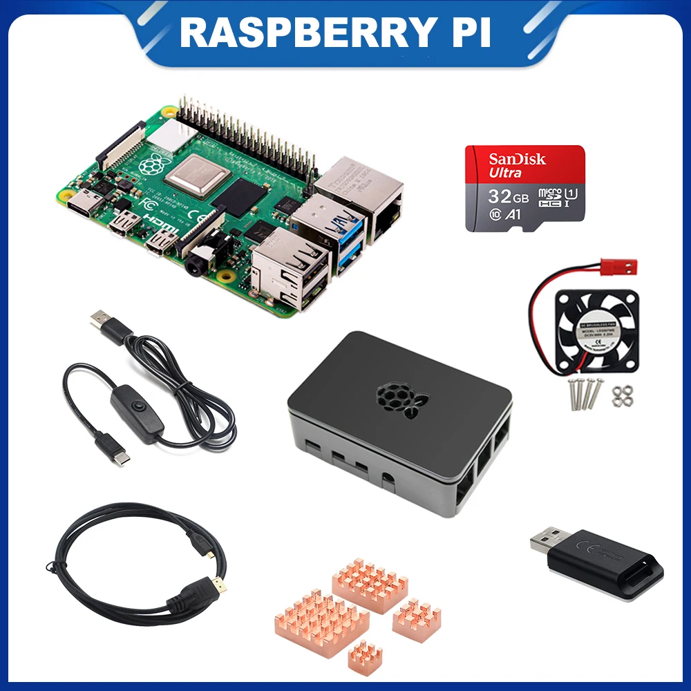 Name: ITINIT-Kit de Raspberry Pi 4 Modelo B R109, tarjeta SD de 2/4/8GB + 1,5 M, TYPE-C + 64G/32GB, carcasa + disipador de calor de cobre + Cable de vídeo + ventilador