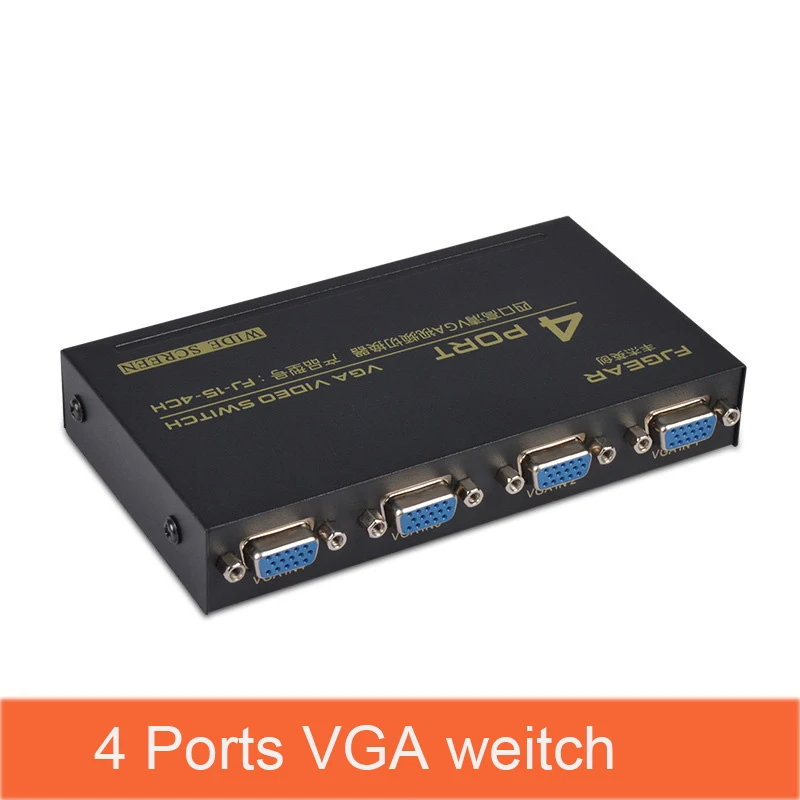 Name: Interruptor VGA de 4 puertos, envío gratis, nuevo, 4 en 1 salida, caja de interruptor divisor VGA, botón de conmutación Manual, 1920*1440 FJ-15-4CH